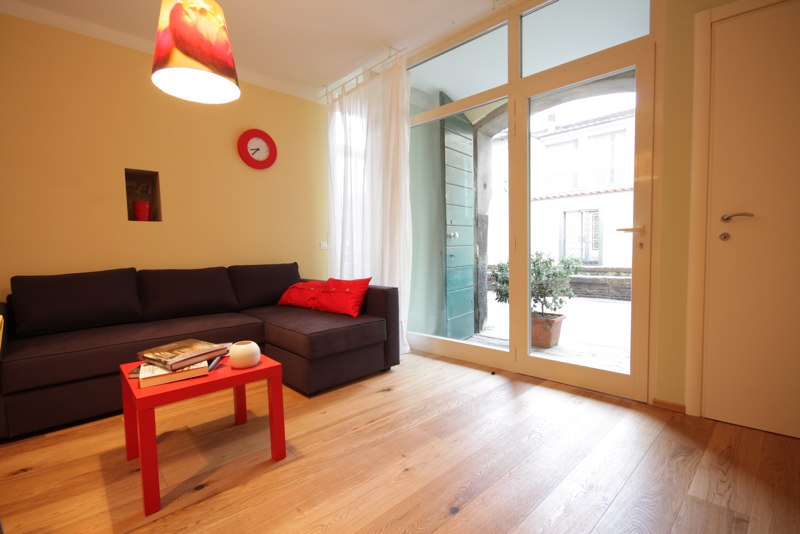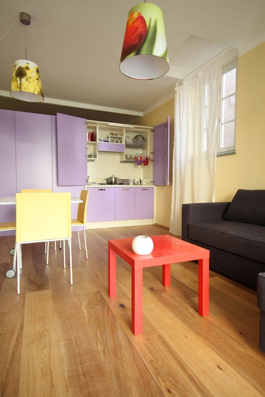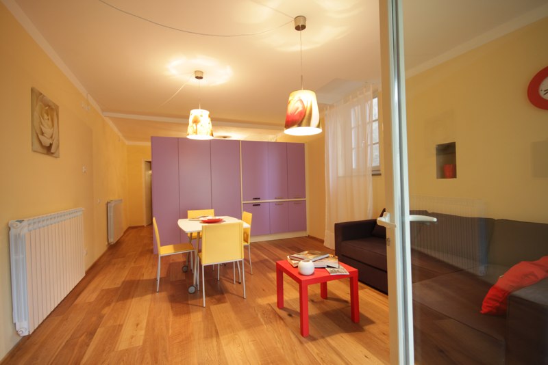 Ampio soggiorno con cucina a scomparsa e divano letto matrimoniale, camera da letto matrimoniale. Bagno con doccia idromassaggio. Pavimento in parquet.