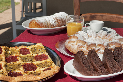 Colazione biologica a base di dolci e marmellate fatte in casa;