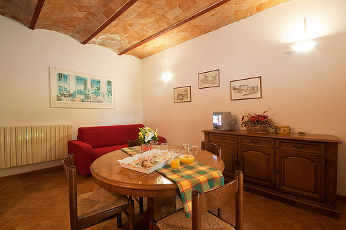 La prima colazione viene servita nel piccolo ristorante dell’Agriturismo.