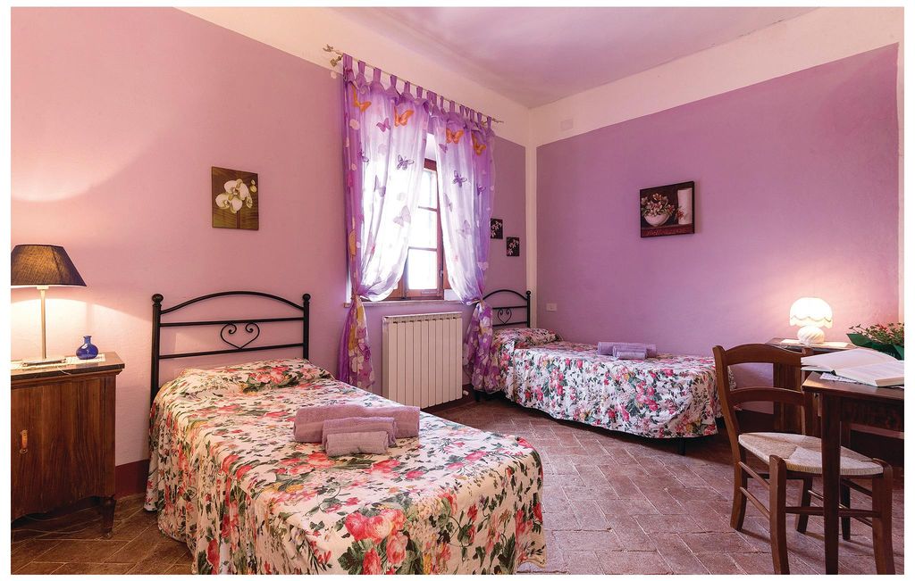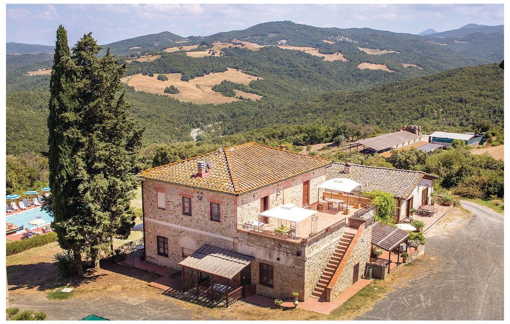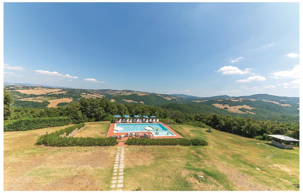 Fattoria toscana con grande sala ristorante, cucina professionale e piscina panoramica. L’agriturismo si compone di 5 appartamenti per un totale di 13 +9 posti letto. La fattoria gode di posizione panoramica dominante la campagna toscana e con vista sulle colline del volterrano. Nelle immediate vicinanze si trova un piccolo e caratteristico borgo toscano abitato da poche anime, a 10 km di strada asfaltata si trovano servizi di ogni genere nel vicino comune di Pomarance.